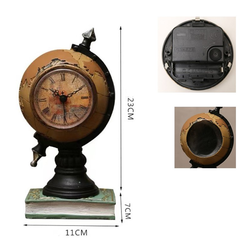 Retro Vintage Desktop Clock Globe Shaped Ornament
